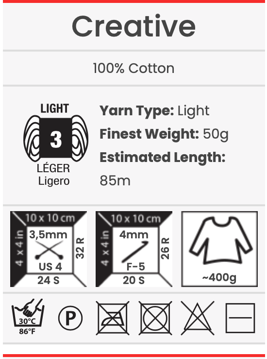 Avec une définition régulière des points et un entretien facile, Creative glisse sur des aiguilles de 5 mm ou un crochet de 6 mm, créant des tricots et des crochets confortables et légers.