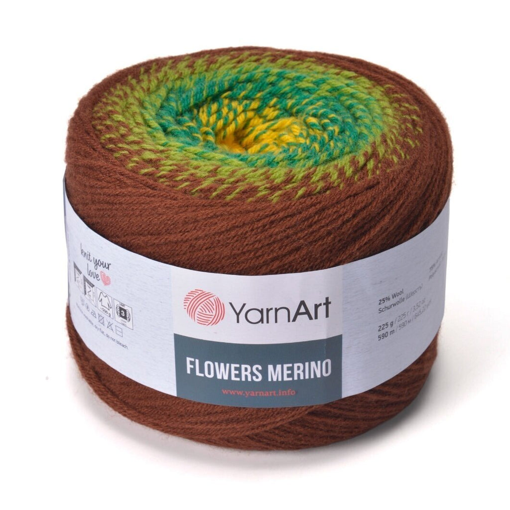 YarnArt Flowers Merino is the winter sister of the famous cotton "Flowers" collection. This cake yarn brings the same mesmerizing, seamless color transitions to your cold-weather wardrobe. Blending warm wool with soft acrylic, it creates a fabric that is snuggly, fuzzy, and perfect for keeping the chill away, all while forming beautiful ombre stripes automatically as you knit or crochet.