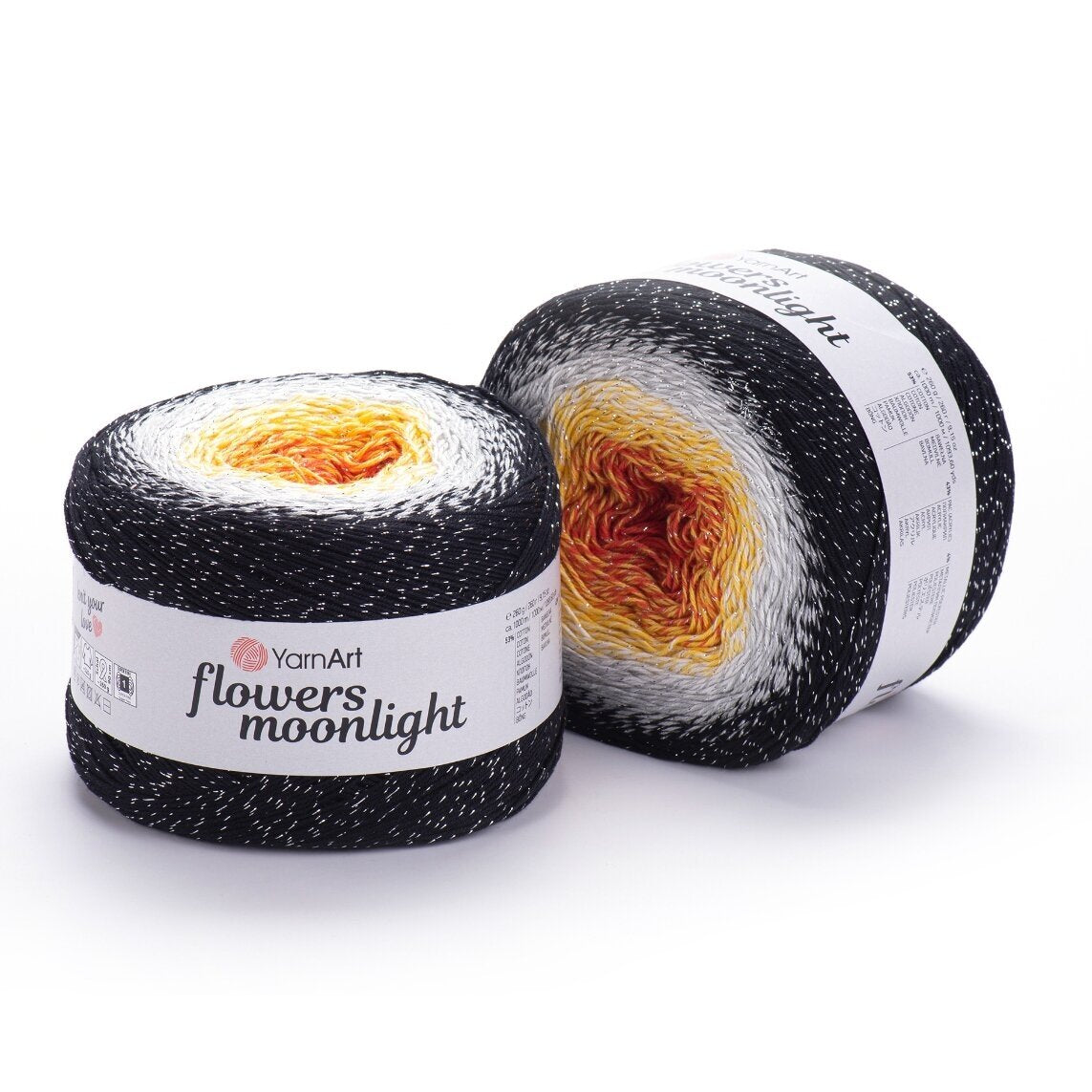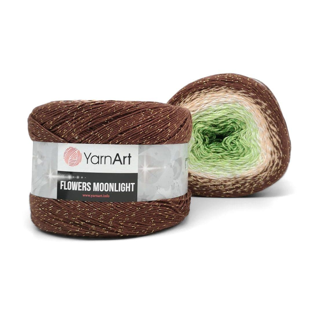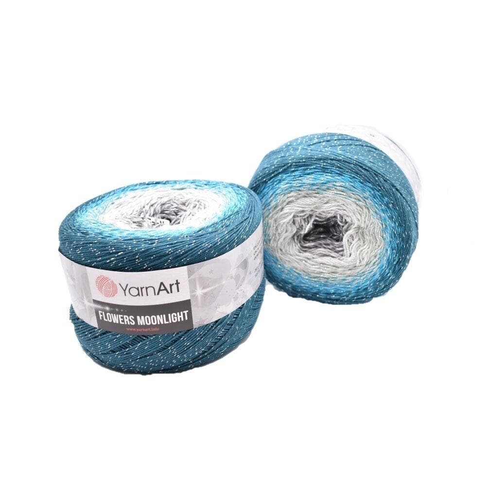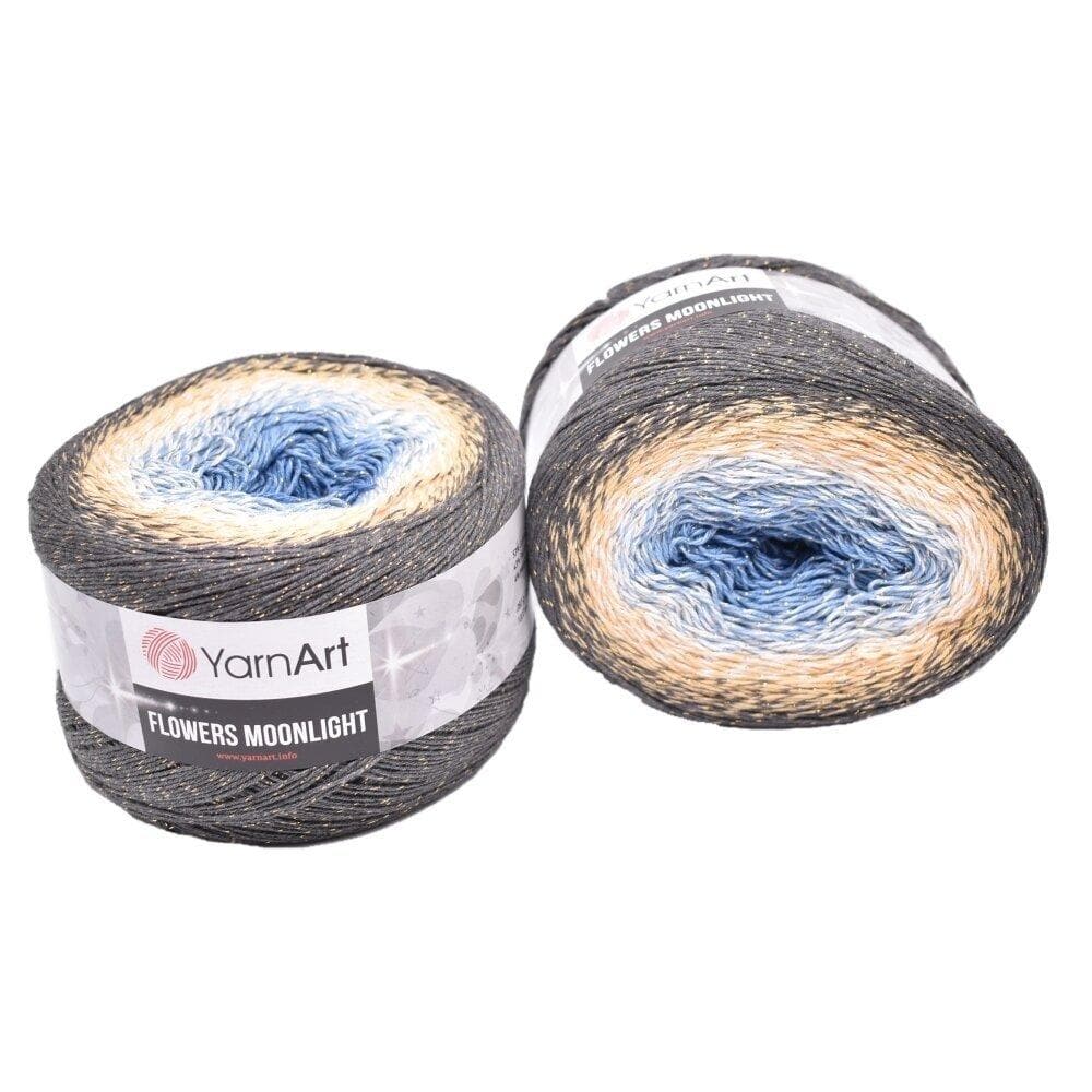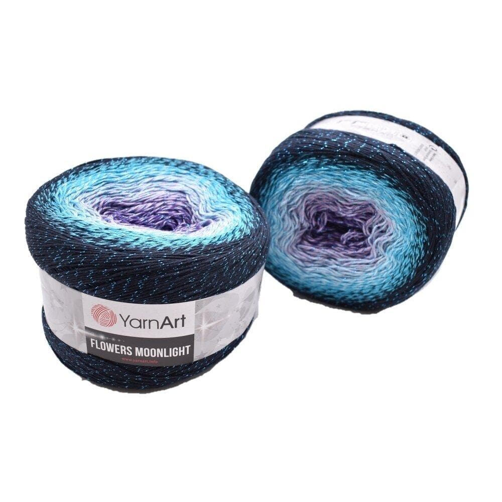 YarnArt Flowers Moonlight adds a sprinkle of magic to the legendary Flowers collection. This generous cake yarn features the same beloved soft cotton blend and seamless color transitions, but with an added metallic thread (Lurex). The result is a fabric that glimmers subtly like moonlight on water, making it the ultimate choice for evening shawls, elegant stoles, and summer tops that need a bit of glamour.
