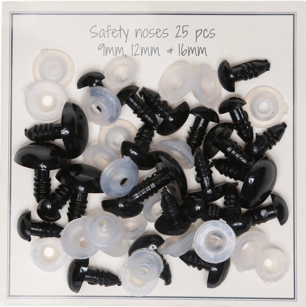 This set contains 25 black noses in an assortment of sizes, designed with a classic triangular shape that suits a wide range of animals. They act as the focal point of the face, giving your handmade toys a cute and realistic expression.